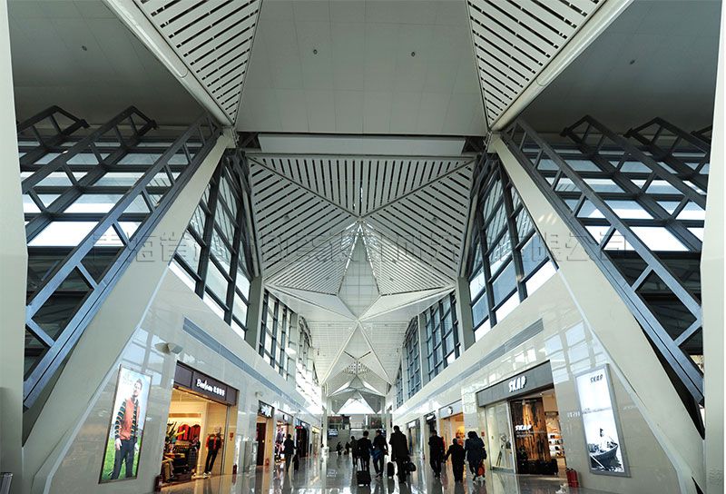 西寧曹家堡機(jī)場(chǎng)位于海東市互助區(qū),航站樓距西寧市區(qū)30公里。本期航站樓設(shè)計(jì)目標(biāo)為2020年年旅客吞吐量400萬(wàn)人次,其中國(guó)際旅客年吞吐量3萬(wàn)人次,國(guó)內(nèi)旅客吞吐量397萬(wàn)人次。本期航站樓呈“工”字形布局,為指廊式結(jié)構(gòu),指廊端放大為集中候機(jī)區(qū),設(shè)10個(gè)近機(jī)位(8C4D)。高峰小時(shí)旅客吞吐量1855人,其中國(guó)內(nèi)部分為1699人,國(guó)際部分為156人,高峰小時(shí)進(jìn)出港旅客比例均為55%,人數(shù)均為935人。旅客中轉(zhuǎn)率為50%,旅客中轉(zhuǎn)人數(shù)85人。新航站樓總建筑面積43950.0平米,占地面積21654.0平米,地上二層,地下一層,建筑高度30.4,米,結(jié)構(gòu)形式為框架、鋼結(jié)構(gòu),設(shè)計(jì)使用年限50年,抗震設(shè)防烈度7度。